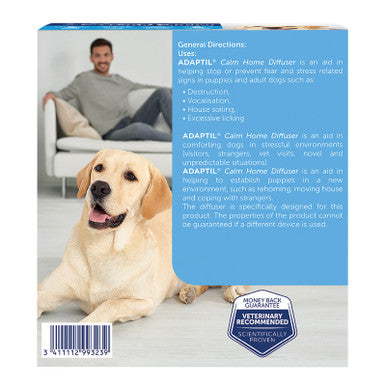 - The Adaptil Calm Home Diffuser is designed to comfort dogs during stressful situations and can also support behavioural therapy and training.