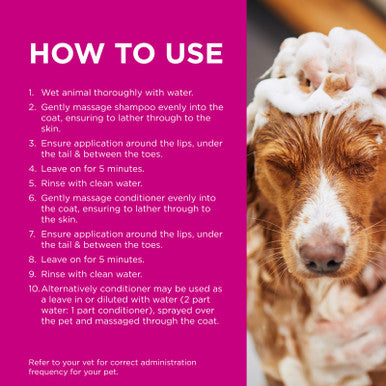 - Massage gently into the coat and skin.
